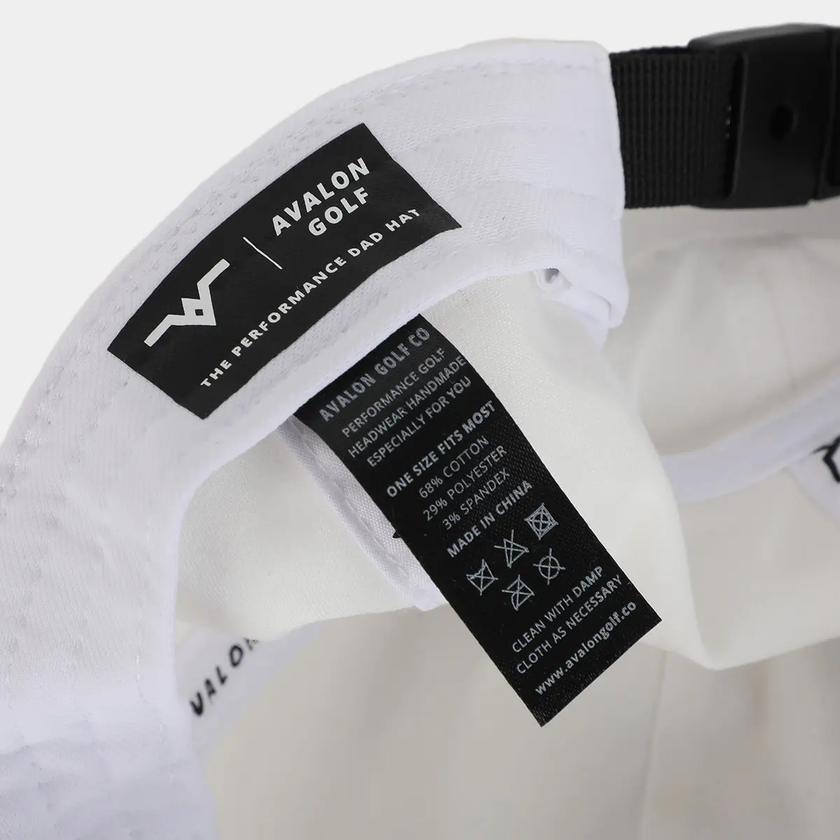 The White Performance Golf Dad Hat from Avalon Golf is constructed from a premium tri-blend fabric consisting of cotton, polyester & spandex. The classic 6 panel hat is shaped as a ‘Dad Hat’ with low crown and curved bill. We spared no expenses in design and have committed to blending style & comfort while carefully crafting even the smallest details. The inner sweatband has been reinforced with a comfort liner for all day wear, Avalon Golf Albatross logo is meticulously embroidered on the front and a back tag featuring the Avalon signature logo is a subtle touch that adds another layer of class. On the inside of the hat, Avalon signature striping is used for an extra level of comfort while also functioning to reinforce seams. The back features and adjustable nylon strap with plastic snap closure to allow for easy and quick size adjustments. Guarantees comfort, style and shade in the Avalon Performance Golf Dad Hat.