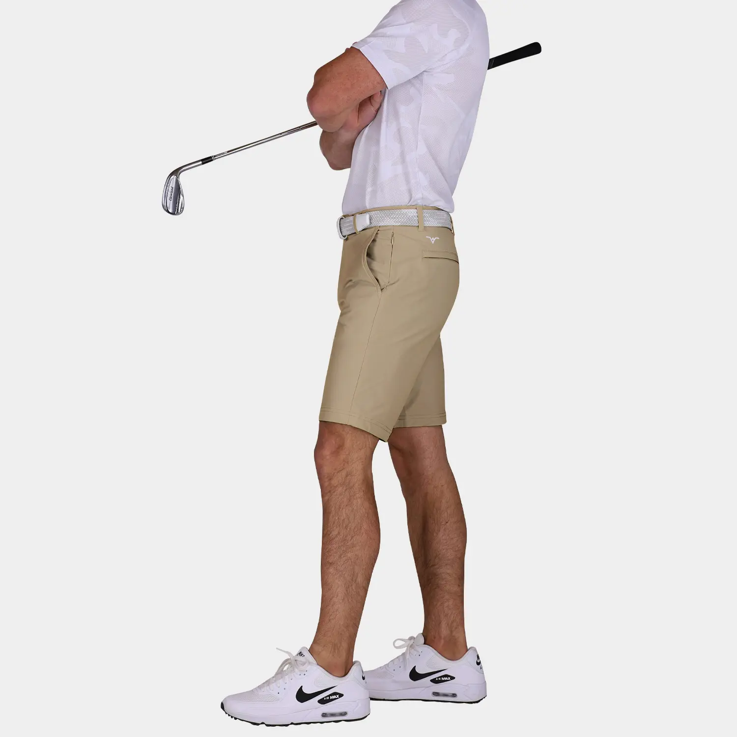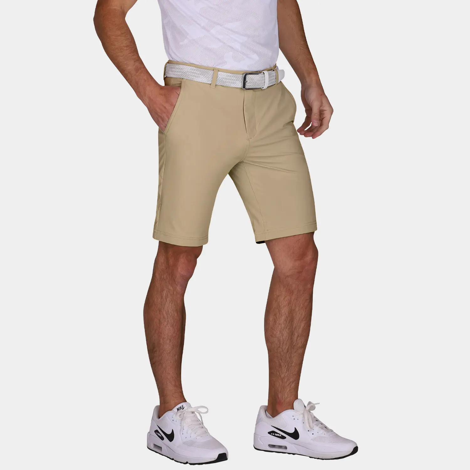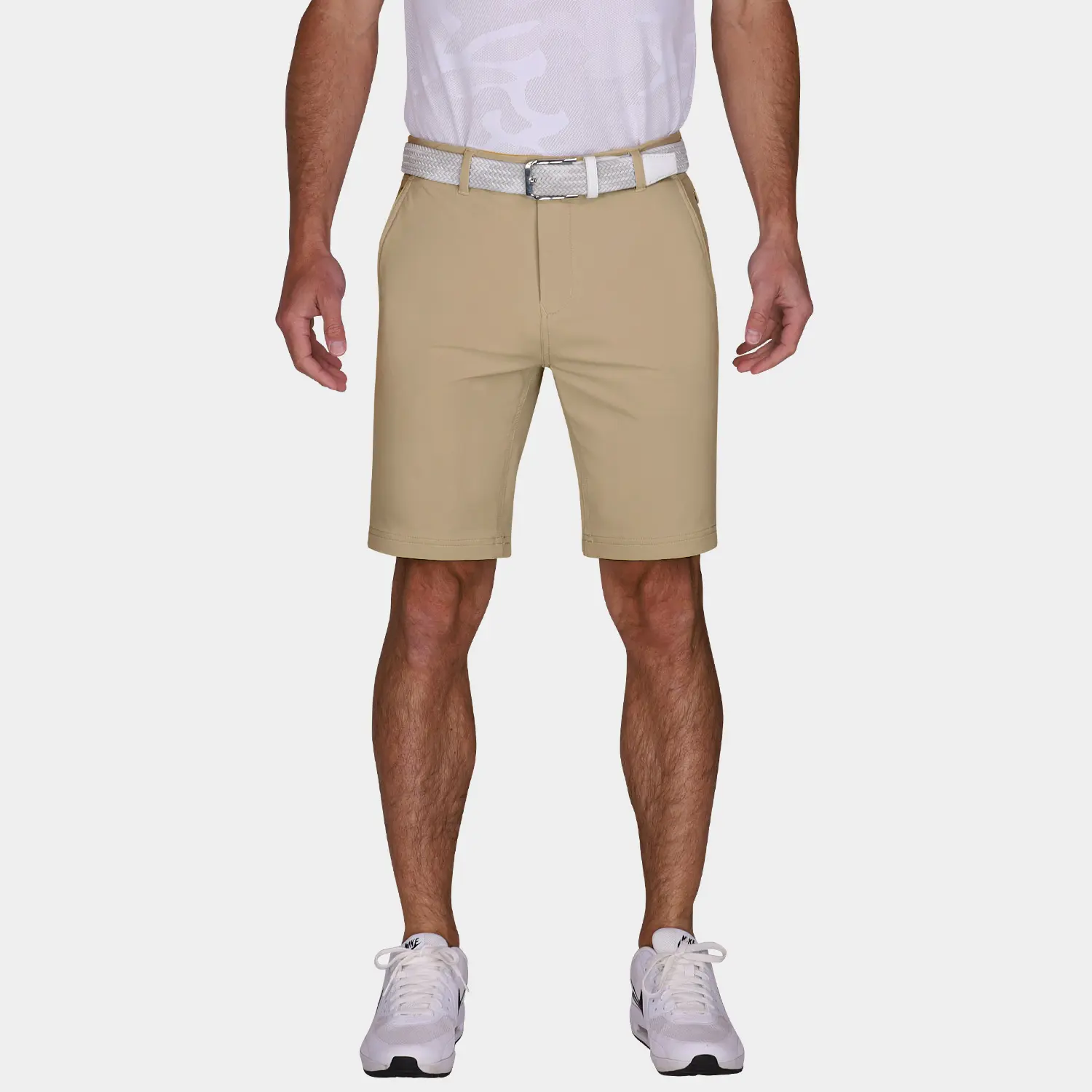 Our Performance 9 Inch Inseam Golf Shorts in Khaki are expertly tailored as a mid-length, slim-fit short for golf. They are constructed using AVG Tour Fabric; a proprietary technical blend of polyamide and elastane that is designed to breathe and stretch while keeping you comfortable all day long. This ultra-premium, mid-length golf short with 9-inch inseam is sure to provide a form-fitting yet flattering look that will help you perform at your best on and off the golf course.