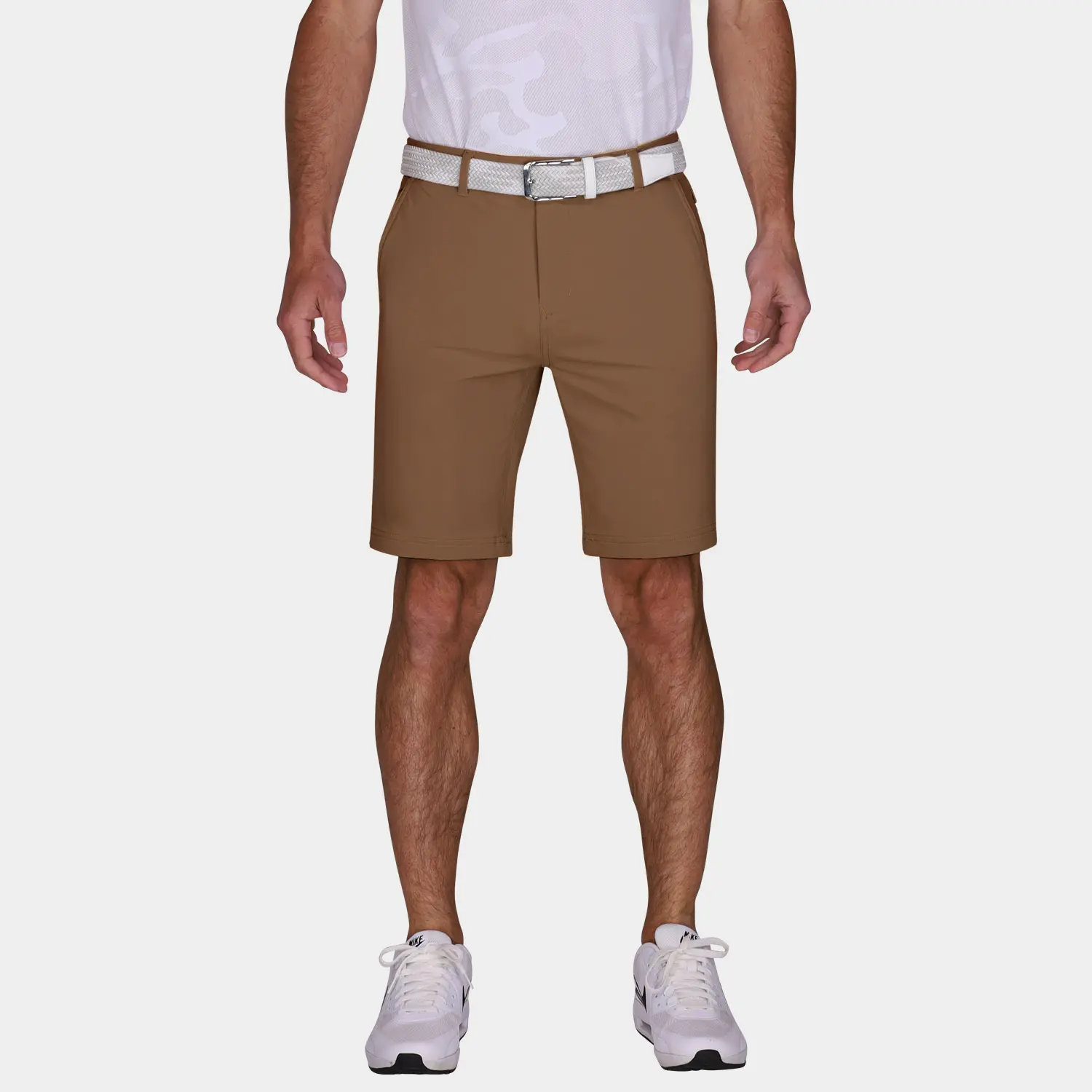 Our Performance 9 Inch Inseam Golf Shorts in Light Brown are expertly tailored as a mid-length, slim-fit short for golf. They are constructed using AVG Tour Fabric; a proprietary technical blend of polyamide and elastane that is designed to breathe and stretch while keeping you comfortable all day long. This ultra-premium, mid-length golf short with 9-inch inseam is sure to provide a form-fitting yet flattering look that will help you perform at your best on and off the golf course.