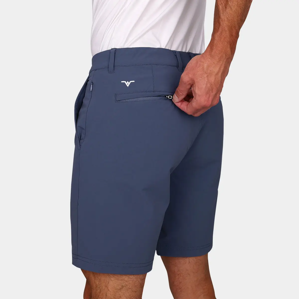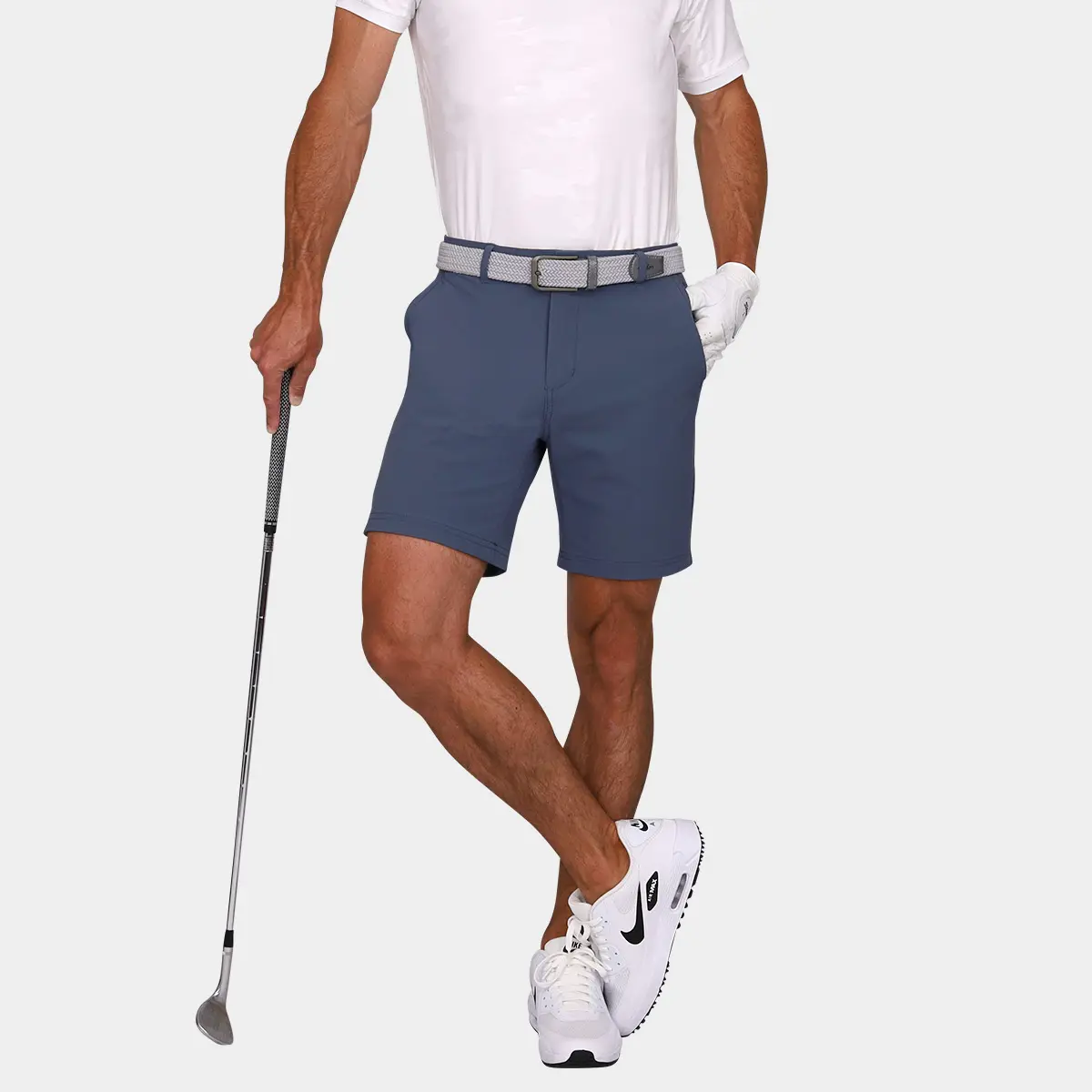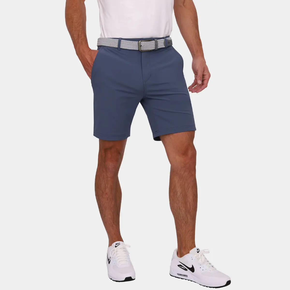 The Avalon Performance 7-Inch Golf Shorts in Graphite Blue are a welcome addition to any golfers wardrobe. These mens shorts have been designed with the perfect balance of style, comfort, quality and functionality. Cut with a 7 inch inseam, Avalon Performance Golf Shorts are designed to sit above the knee for a more modern look. Modern tailored with slim leg openings (not too tight!), these shorts will function beyond the course and include 5 pockets to store valuables. The inner gripper waistband features an Avalon branded silicon tack gripper that’s designed to help keep shirts tucked while the belt loops, a front zipper, and a button fly to add a touch of class. Avalon Performance 7-inch Golf Shorts are constructed using a unique blend of polyamide and elastane, including a 4-way stretch. It is durable yet breathable and ultra-soft to provide all-day comfort. The graphite blue is one of our best selling colors and is sure to keep you the best looking one in your foursome. Get ready to show off some thighs in the Performance Golf Shorts with 7″ inseam.