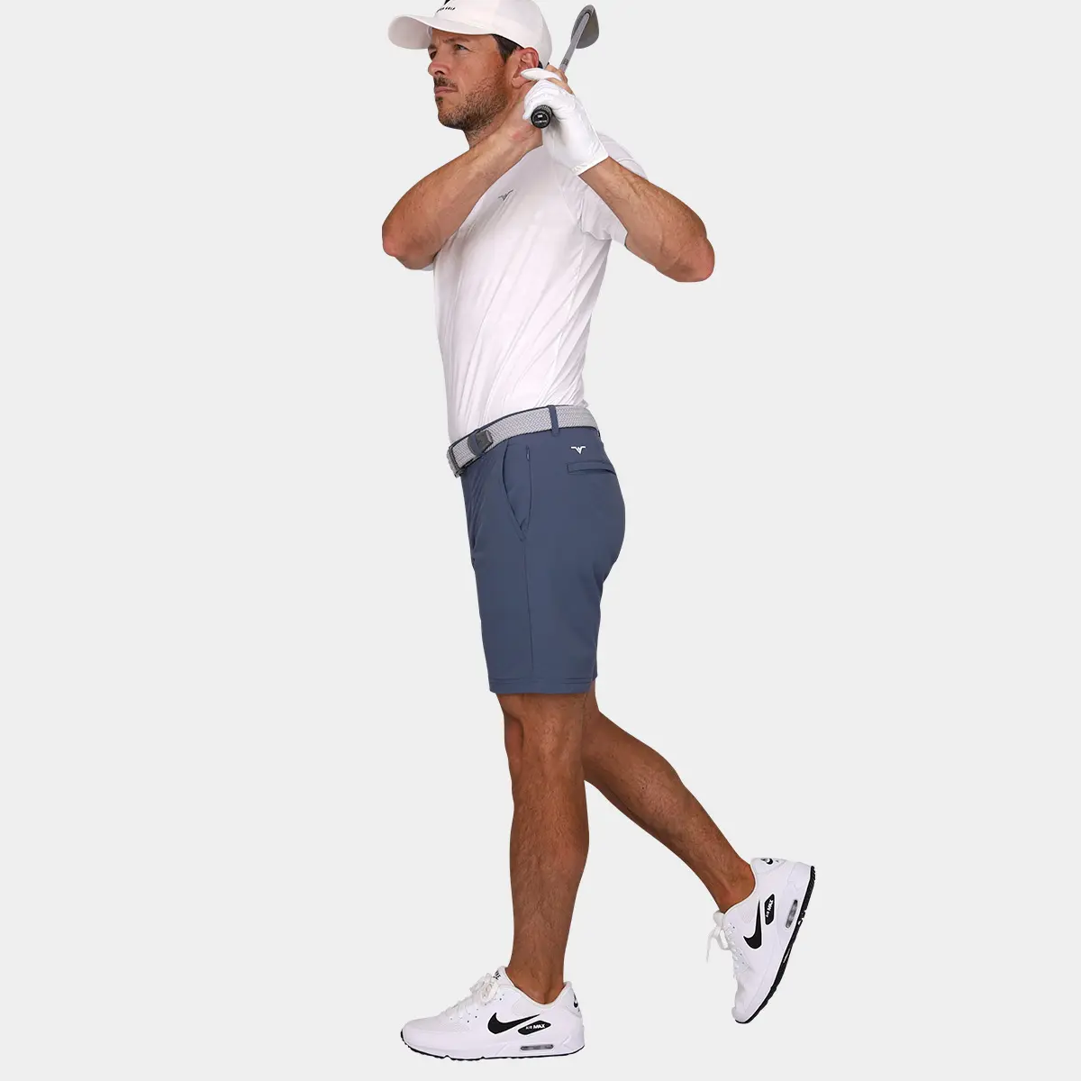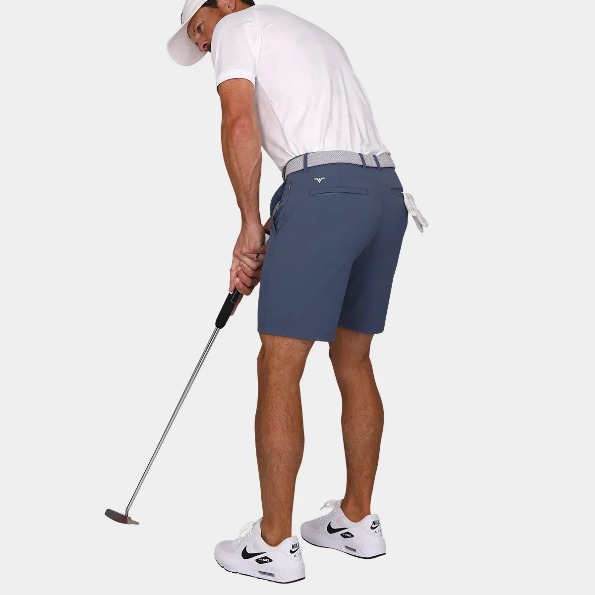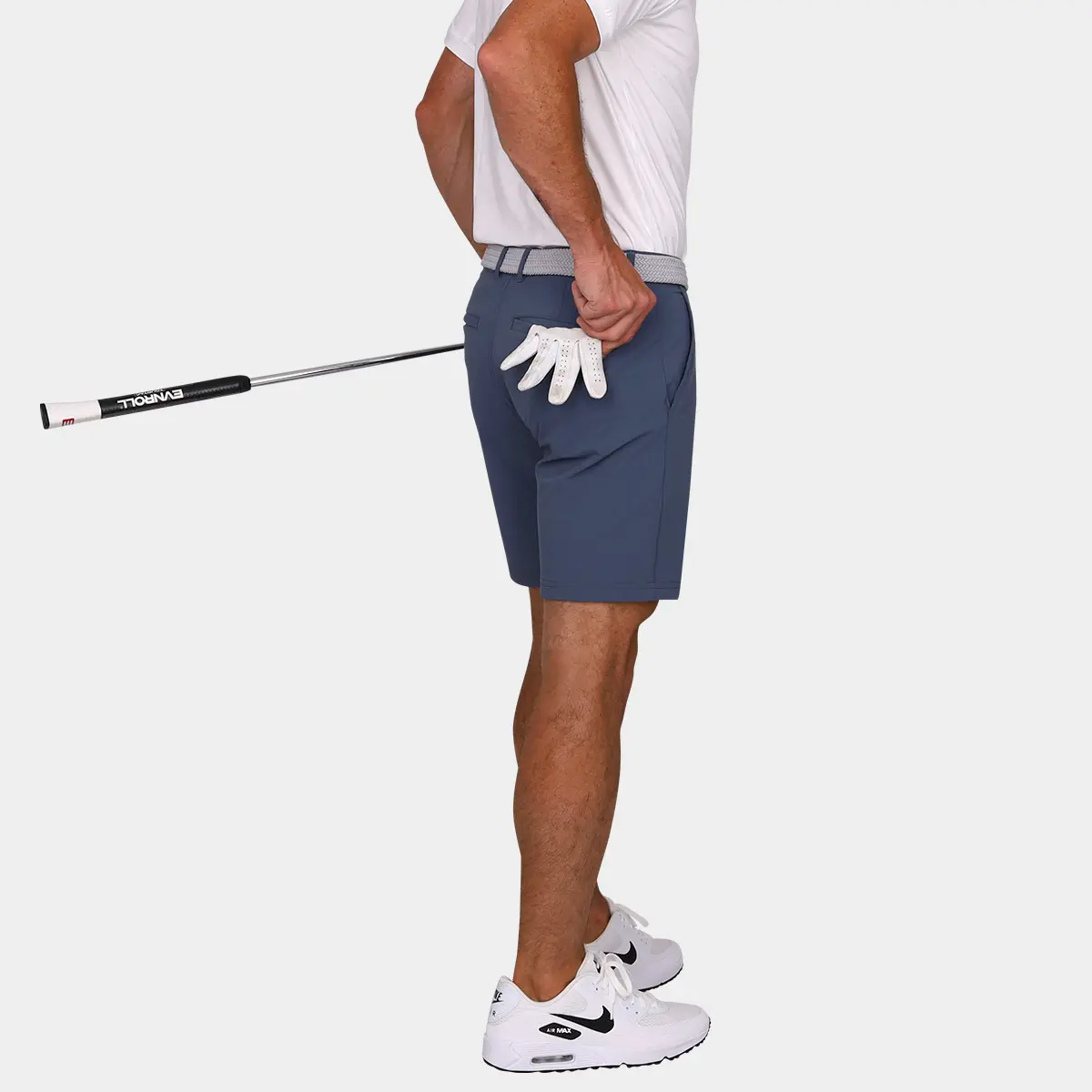 The Avalon Performance 7-Inch Golf Shorts in Graphite Blue are a welcome addition to any golfers wardrobe. These mens shorts have been designed with the perfect balance of style, comfort, quality and functionality. Cut with a 7 inch inseam, Avalon Performance Golf Shorts are designed to sit above the knee for a more modern look. Modern tailored with slim leg openings (not too tight!), these shorts will function beyond the course and include 5 pockets to store valuables. The inner gripper waistband features an Avalon branded silicon tack gripper that’s designed to help keep shirts tucked while the belt loops, a front zipper, and a button fly to add a touch of class. Avalon Performance 7-inch Golf Shorts are constructed using a unique blend of polyamide and elastane, including a 4-way stretch. It is durable yet breathable and ultra-soft to provide all-day comfort. The graphite blue is one of our best selling colors and is sure to keep you the best looking one in your foursome. Get ready to show off some thighs in the Performance Golf Shorts with 7″ inseam.