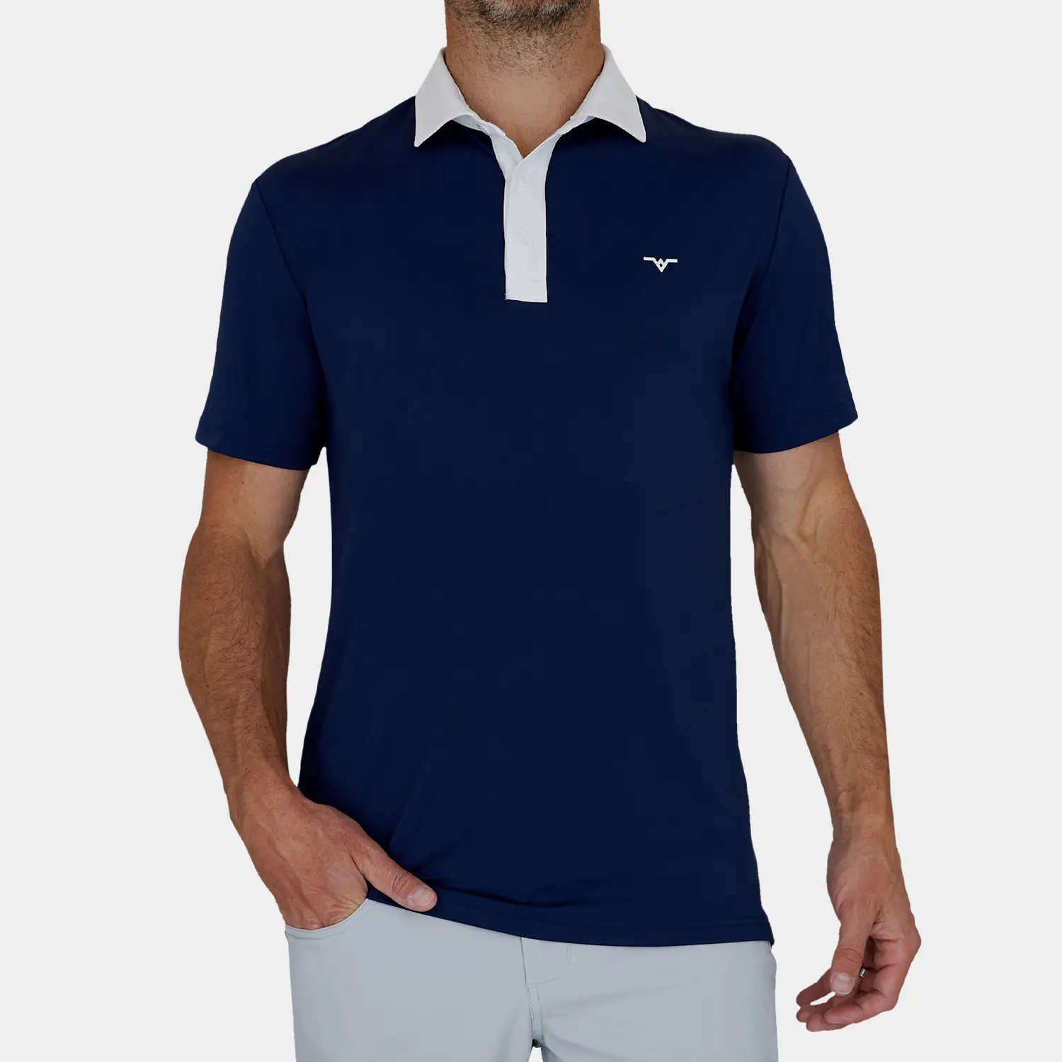 Performance Golf Polo: Navy Blue & White