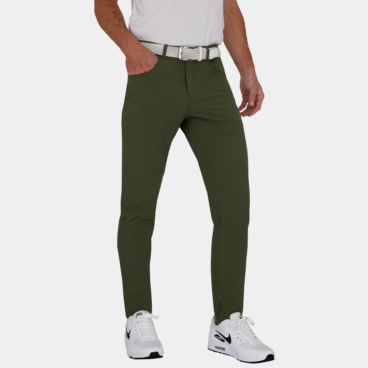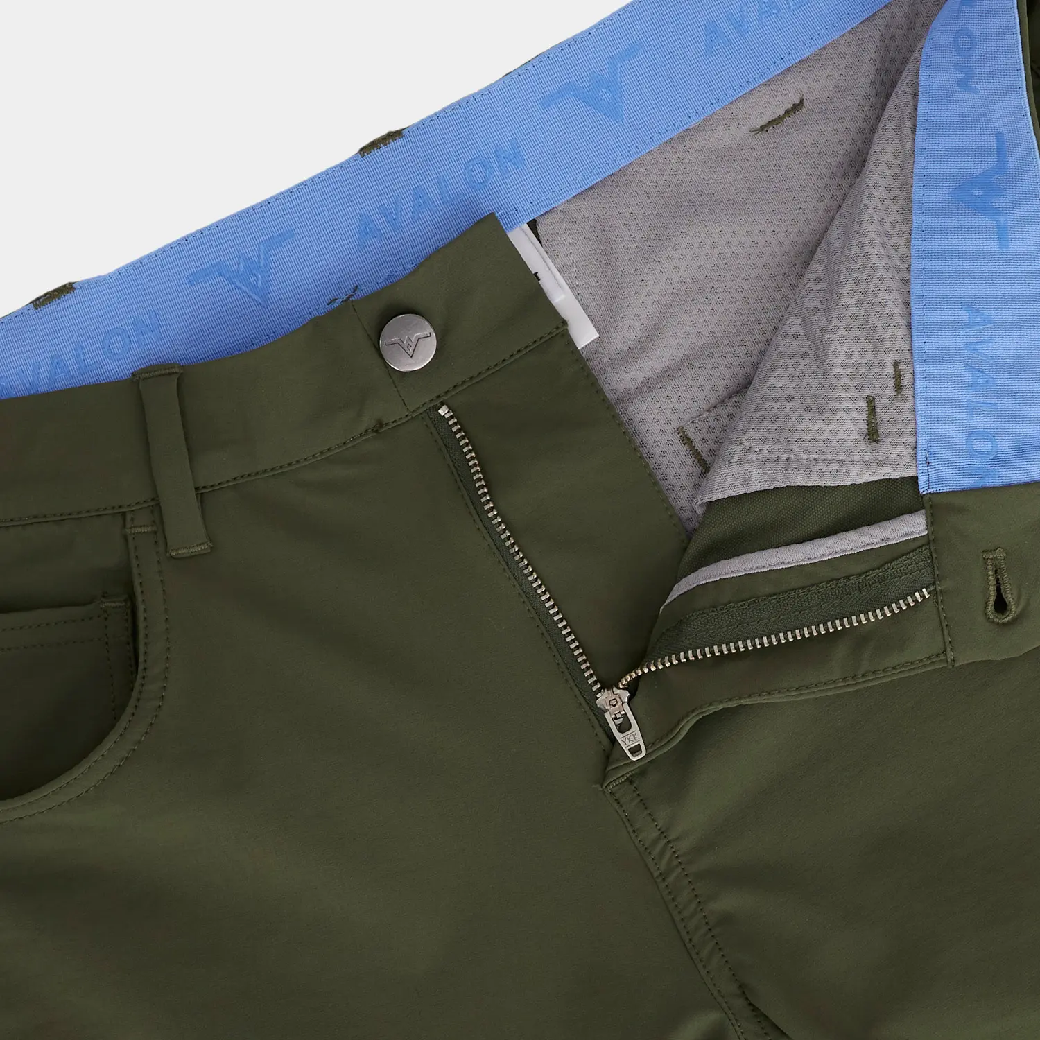 Skip to contentThe Avalon Tour Mens Slim-Fit Golf Pants in Green are designed for men and offer a traditional take on our best selling golf joggers. Cut from our ultra-technical AVG Tour Fabric ®, a proprietary blend of Polyamide & Elastane, the Tour Pant is lightweight to keep you cool and buttery soft for all day comfort. They feature UPF 50+ for sun protection, are moisture wicking, breathable and include 4 way responsive hyperstretch to move with you. We’ve expertly tailored these mens slim-fit golf pants as a modern luxury fit with tapered legs and slimmer leg openings. Quality, craftmanship & durability was a focal point during design and we’ve reinforced all seams, double stitched stretch points & used high quality trim such as a YKK zipper and electroplated button. We designed without compromise to make the best men’s golf pants. Finishing touches include an inner silicon grip waistband to keep shirts tucked, durable yet soft mesh pocket liners and 5 pockets (including a back zipper pocket & front inner ‘ball marker’ pocket). The Avalon Tour Mens Slim Fit Golf Pants while designed for golf, will function even beyond the course.