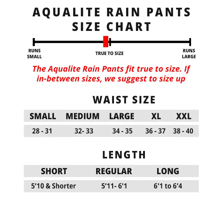 Aqualite Rain Pants Fit & Sizing